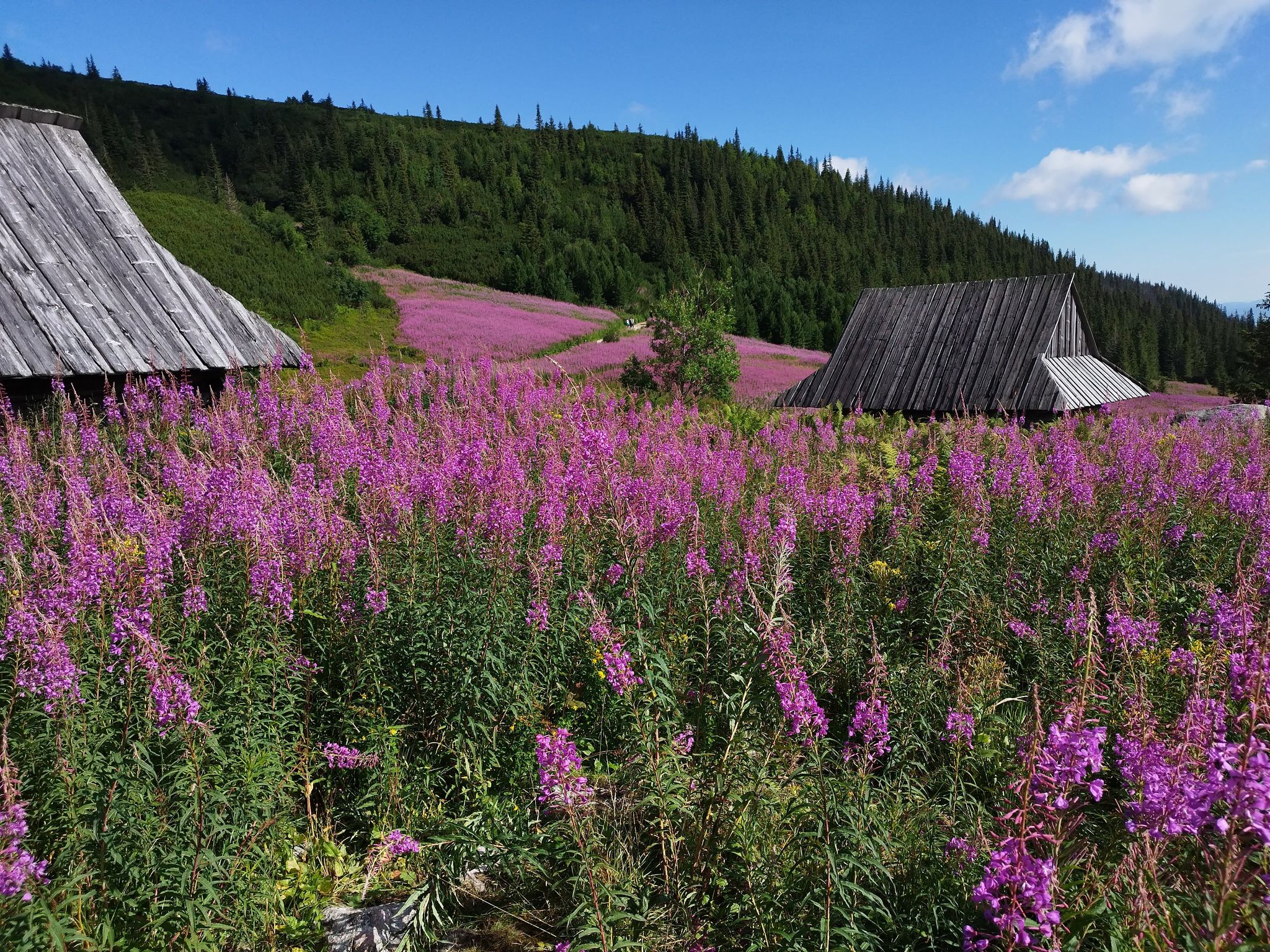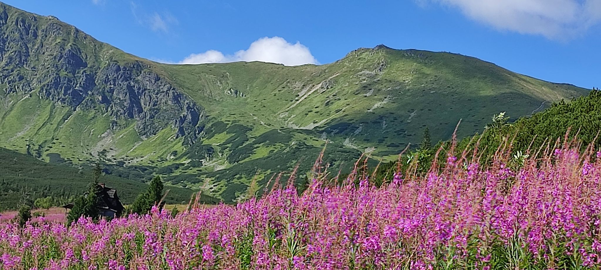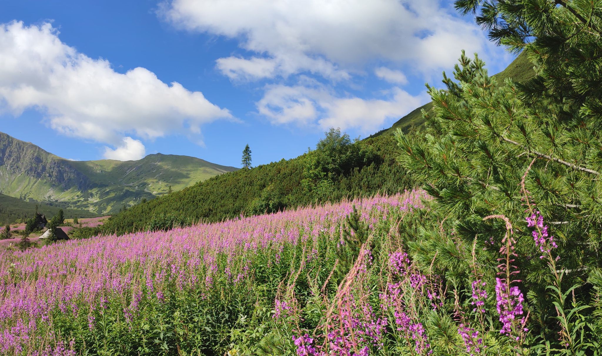 Hala Gąsienicowa i przepięknie kwitnąca wierzbówka kiprzyca.