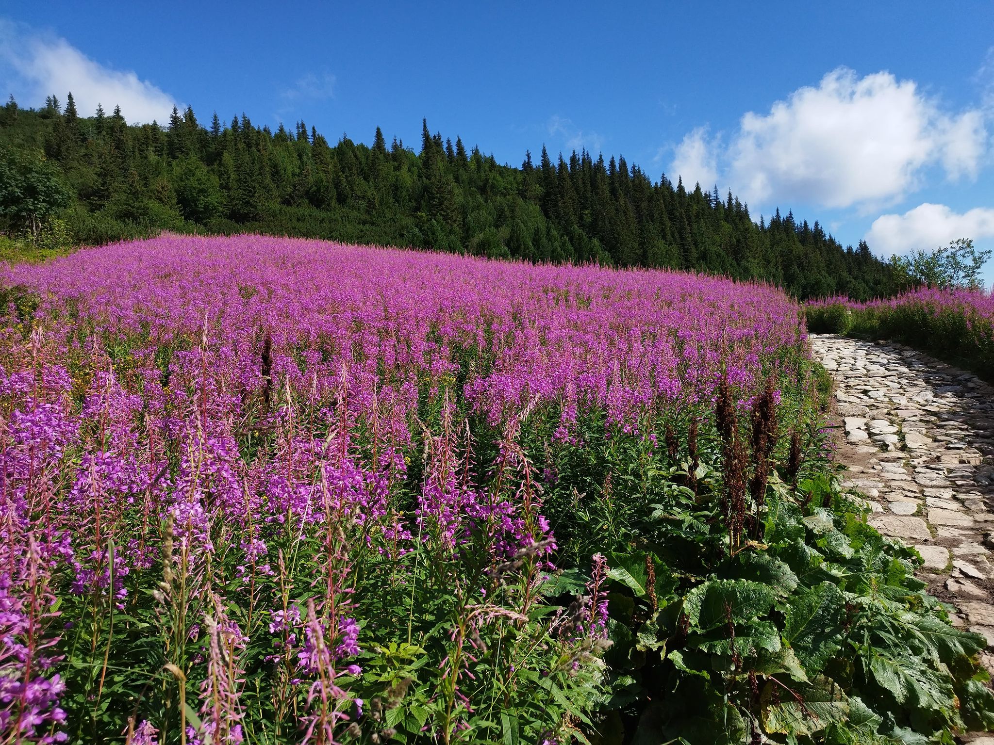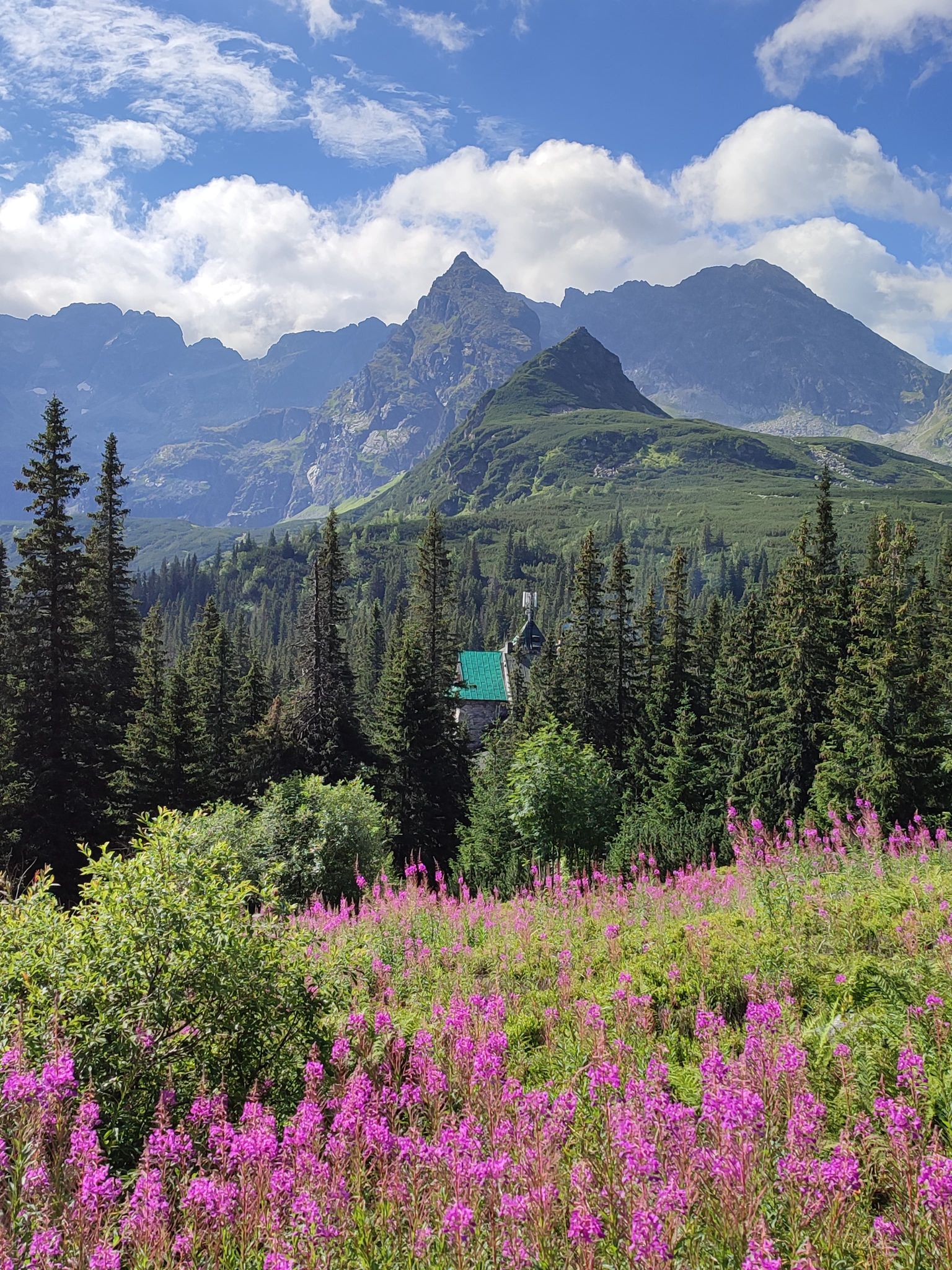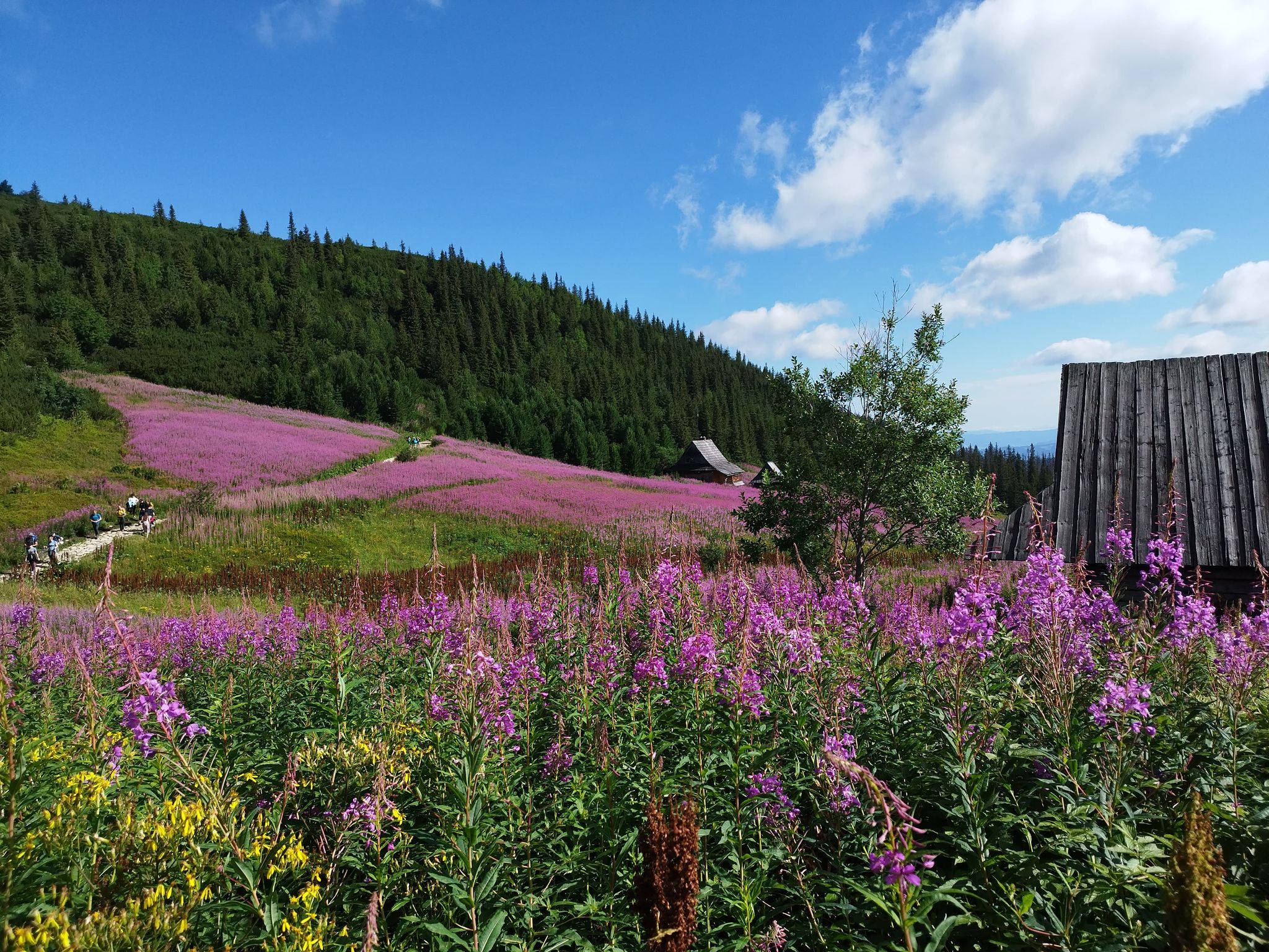 Hala Gąsienicowa i przepięknie kwitnąca wierzbówka kiprzyca.