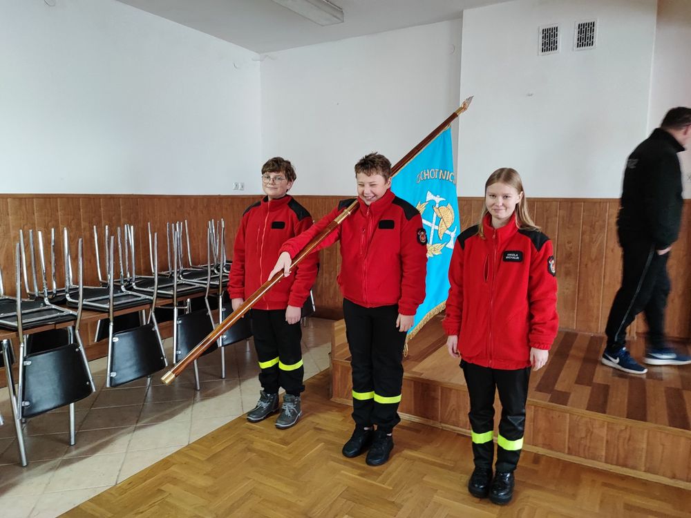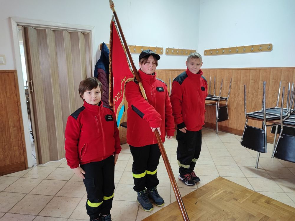 Tym razem ( 26.11) nasi młodzi adepci pożarnictwa doskonalili swoje umiejętności w obszarze musztry reprezentacyjnej głównie przemarszu w poczcie sztandarowym.