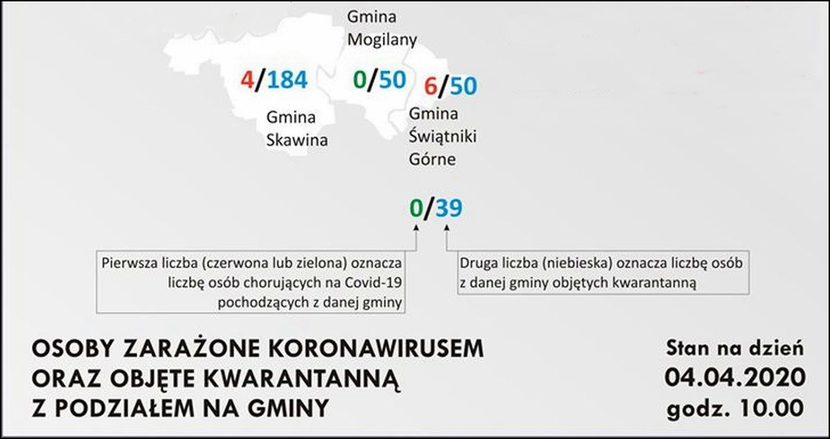 W gminie Świątniki Górne odnotowano 6 przypadków zakażenia koronawirusem , jak również 50 osób objętych kwarantanną. W gminie Mogilany na szczęście nie ma osób zakażonych, natomiast 50 osób obejmuje kwarantanna.Gmina Skawina, stwierdzono 4 przypadki zakażenia, oraz 184 osoby które przechodzą kwarantannę.