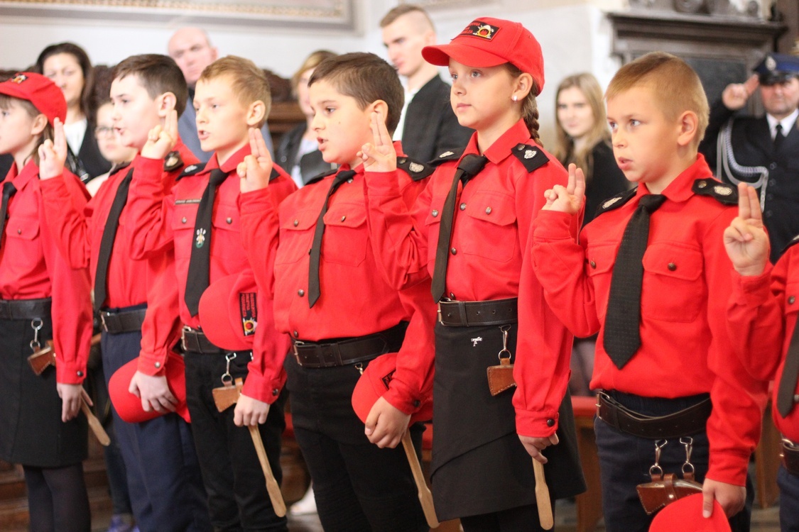 Ślubuję ze wszystkich sił służyć naszej Ojczyźnie Rzeczypospolitej Polskiej ofiarną pracą w szeregach Młodzieżowej Drużyny Pożarniczej, przyczyniać się do ochrony życia i mienia jej Obywateli oraz ich dorobku kulturalnego i materialnego przed pożarami i innymi klęskami żywiołowymi. Ślubuję przestrzegać postanowień Statutu OSP i Regulaminu Młodzieżowej Drużyny Pożarniczej, pogłębiać wiedzę pożarniczą, postępować uczciwie, wykonywać sumiennie polecenia przełożonych i być wzorem w przestrzeganiu zasad ochrony przeciwpożarowej.