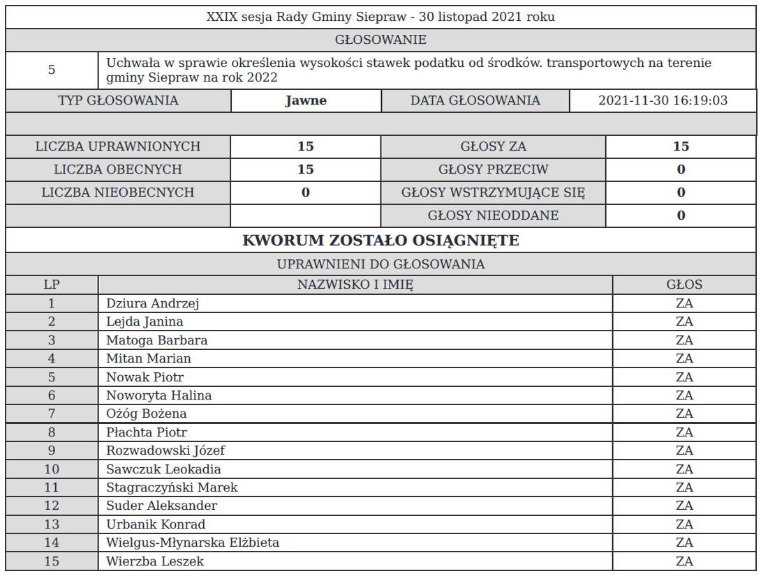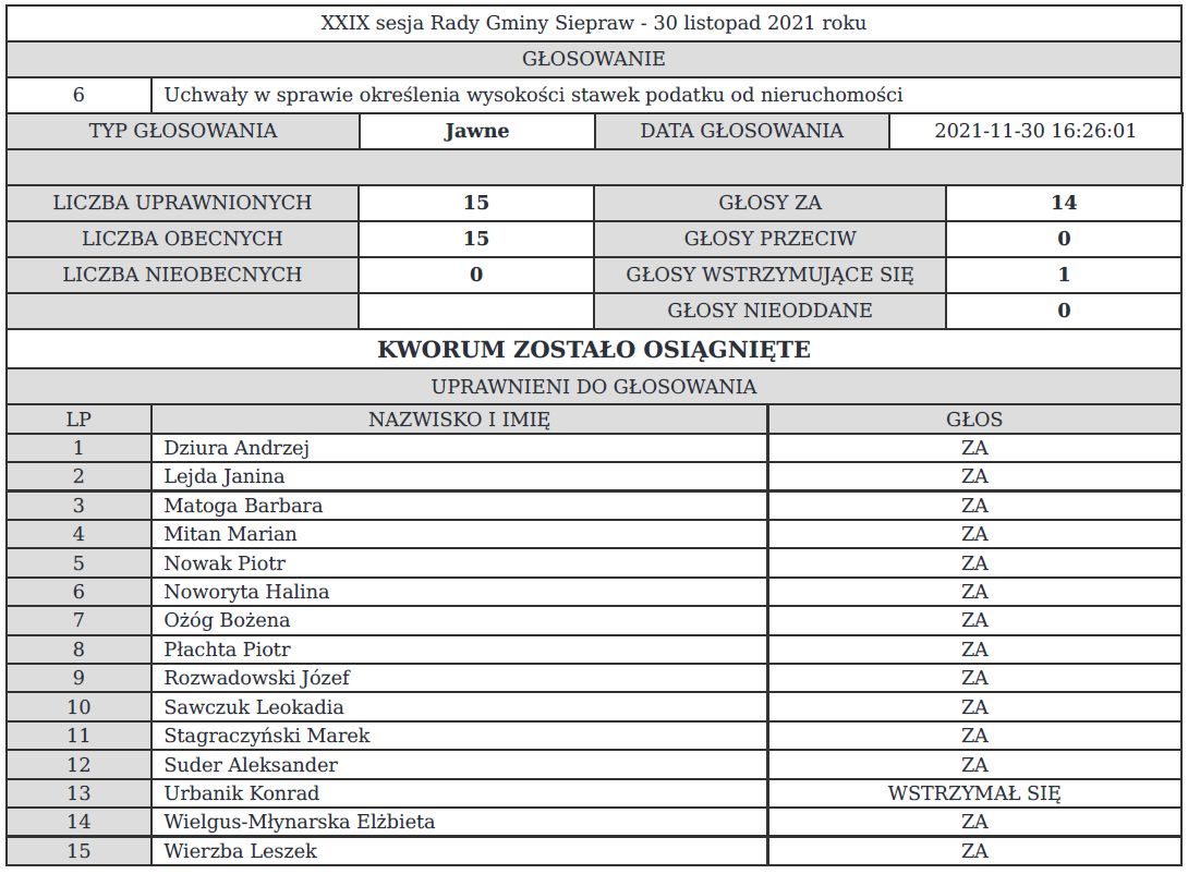 14 radnych poparło podwyżkę podatku, jeden się wstrzymał.