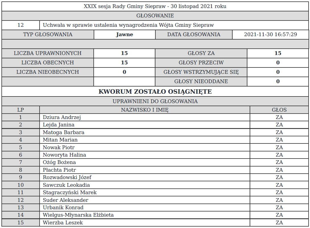 W tym przypadku radni jednogłośnie głosowali za podwyżką.