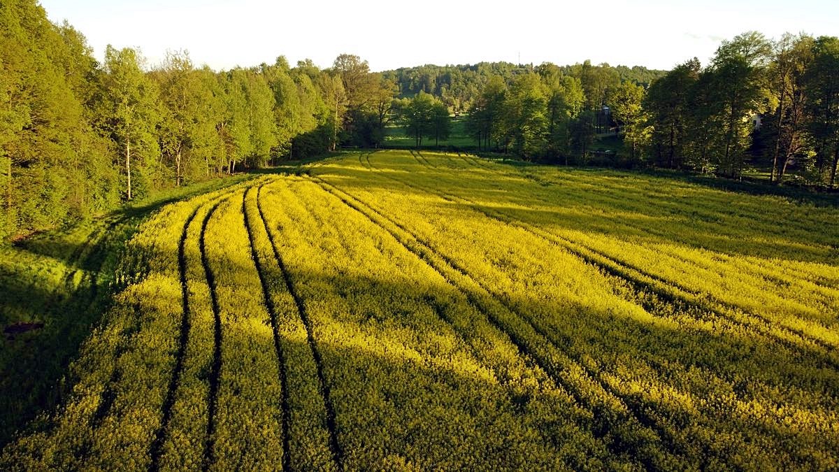 Kwitnące pole rzepaku w Sieprawiu.
