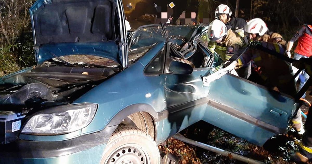 W dniu dzisiejszym tj. 03.11.2020r. o godz. 18.17 zostaliśmy zadysponowani do wypadku w naszej miejscowości. Po przyjeździe na miejsce zdarzenia okazało się, że samochód osobowy uderzył w drzewo. Trzy osoby opuściły pojazd o własnych siłach, jedna była uwięziona w pojeździe.