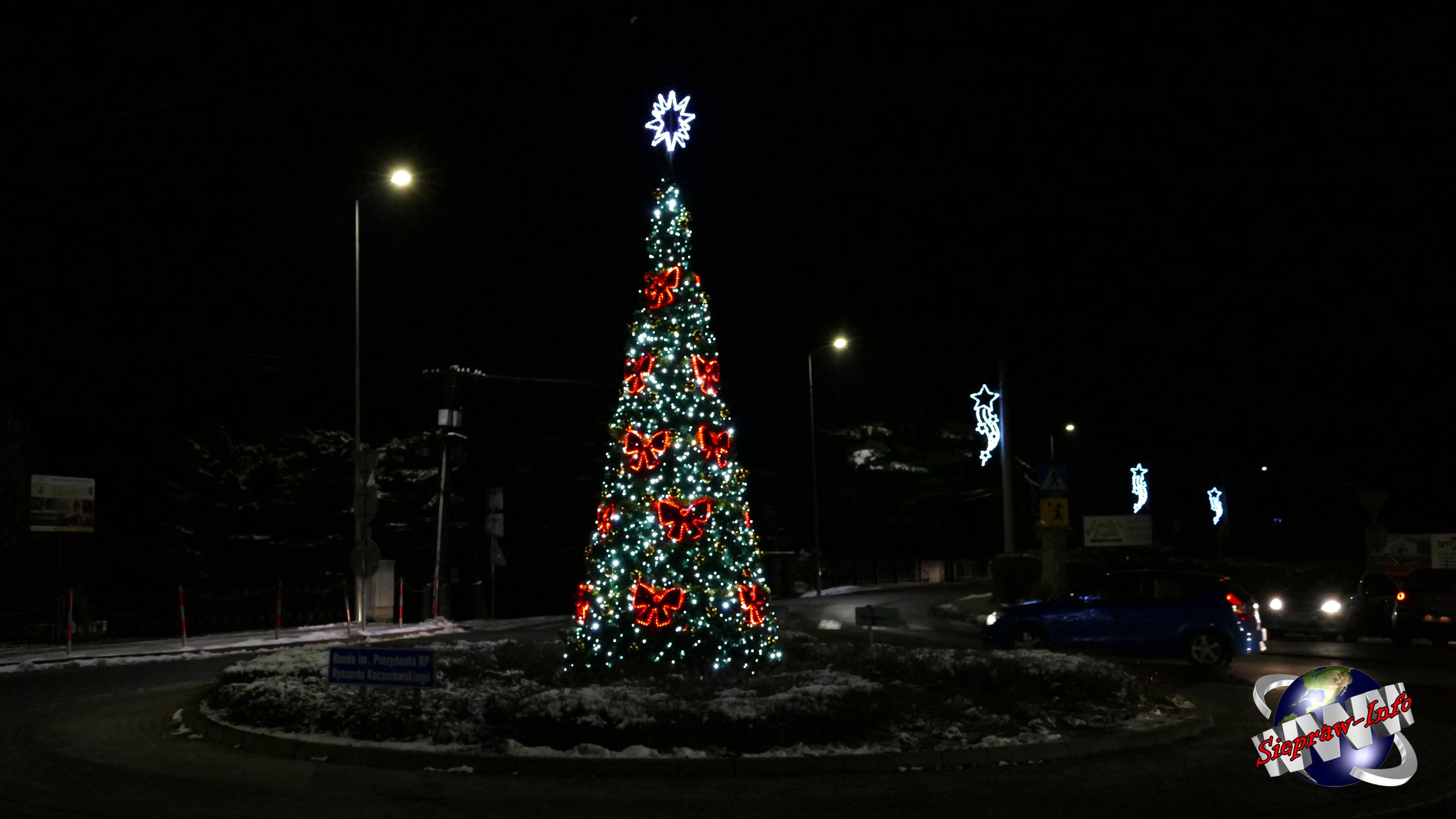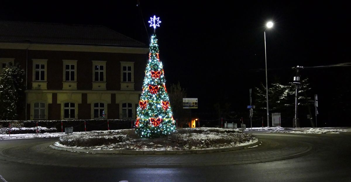 Galeria zdjęć ze Świątnik Górnych. Rondo i świąteczna choinka.